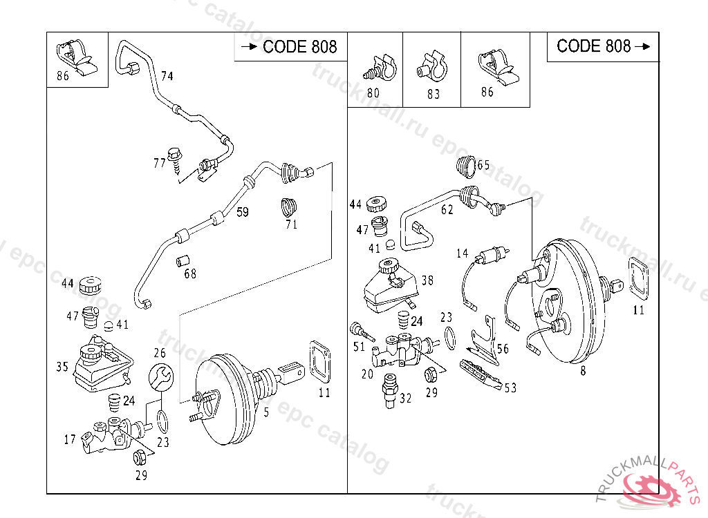 LINE FROM VACUUM PUMP TO BRAKE BOOSTER ASSY, A 809594 F 894083 EXEPT ON VEHICULES WITH CODE 800 ALSO INSTALLED IN VEHICLE FROM A 809595, F 894084 WITH CODE 809