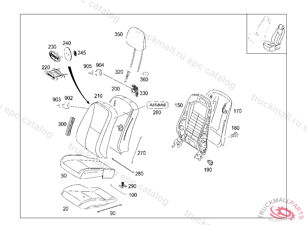 PAD FRONT SEAT BACKREST , A 26557620081001809 L 00540020090531, Replaced By: A2219103704