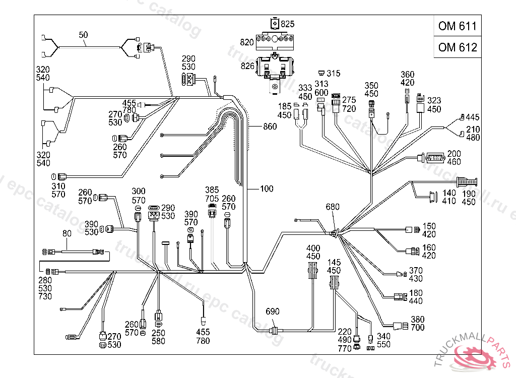 INSULATING SLEEVETO 000 546 83 40, A 218852 EXCEPT FOR A 103237 - A 218851 WITH CODE 030 F 190065 EXCEPT FOR F 159752 - F 190064 WITH CODE 030 AS OF IDENT-NO.: FOR HEADLAMP WIRING HARNESS REFER TO TU 54/121, WITH AIR CONDITIONER REFER TO TU 54/485 ALSO INSTALLED ON A 219847