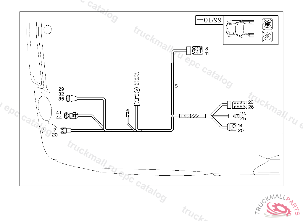 ELECTRIC CABLE ENGINE COMPARTMENT, A 698508 X 012426 EXCEPT CODE 808 ALSO INSTALLED IN VEHICLE TO A 698507, X 012425 WITH CODE 809 ALSO INSTALLED IN A 654636, A 704016