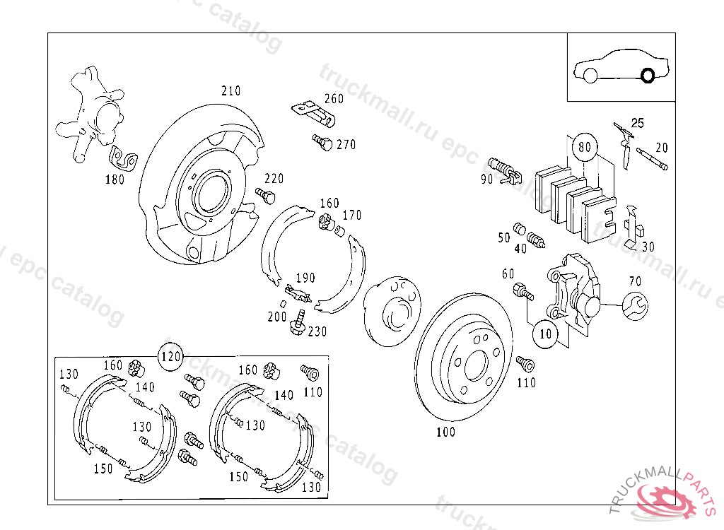 BRAKE SHOE RANGE OF DELIVERY, WHEN SELLING BRAKE LININGS TO END USERS/DESK BUYERS THE A 203 005 25 99 IS TO BE HANDED OVER FREE OF CHARGE