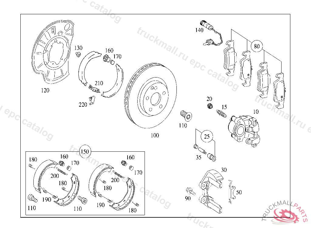 TS DISK BRAKE PAD PARTS KIT, WITHOUT WEAR SENSOR, WHEN SELLING BRAKE LININGS TO END USERS/DESK BUYERS THE A 203 005 25 99 IS TO BE HANDED OVER FREE OF CHARGE