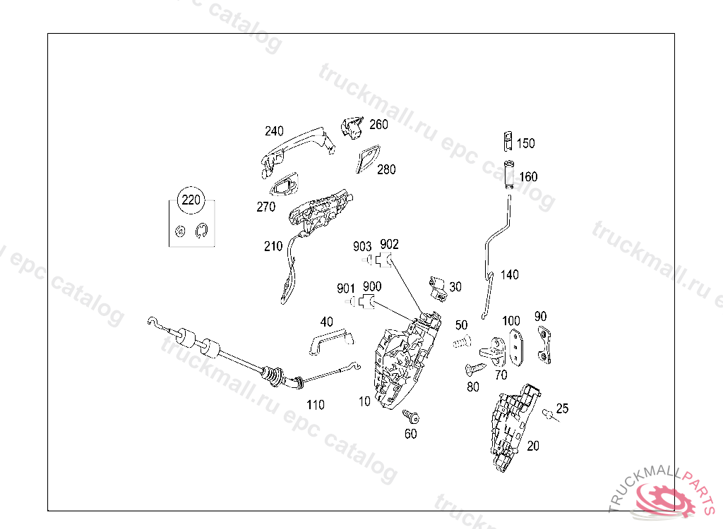 DOOR LOCK LEFT, FIRST EXHAUST STOCK OF OLD PARTS UP TO IDENT NO. A 25804520080826, Replaced By: A2217305335