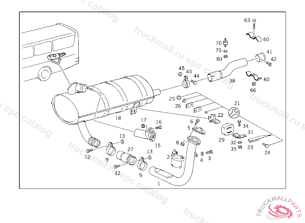 CONNECTOR FRONT EXHAUST PIPE TO MUFFLER, FOR USE WITH MERCEDES-BENZ BODY UP TO IDENT NO.039438, FOR VEHICLES LESS MERCEDES-BENZ BODY UP TO IDENT NO.040793