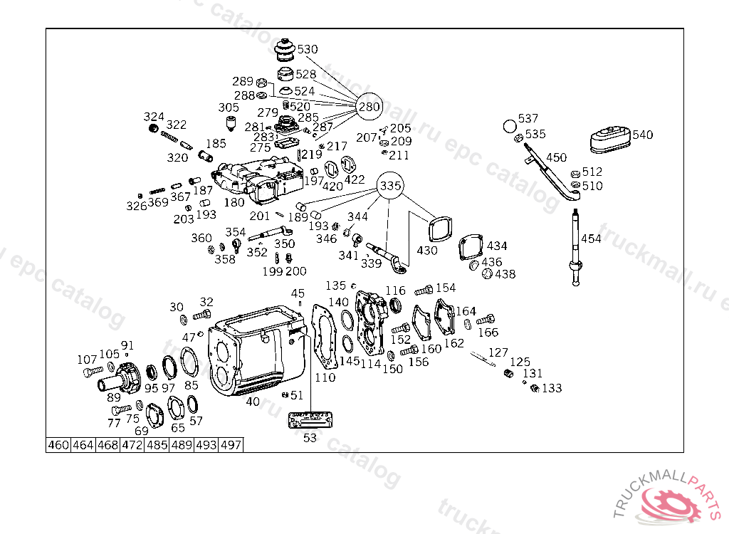 TRANSMISSION CASE COVER SHIFT CASE,475058 UP TO IDENT NO.4 152920,FROM IDENT NO.4 152921-4 473926,SEE MODEL 713.101UNIT MICROFICHE FROM 4 473927,SEE MODEL 714.0 UNIT MICROFICHE 714.0