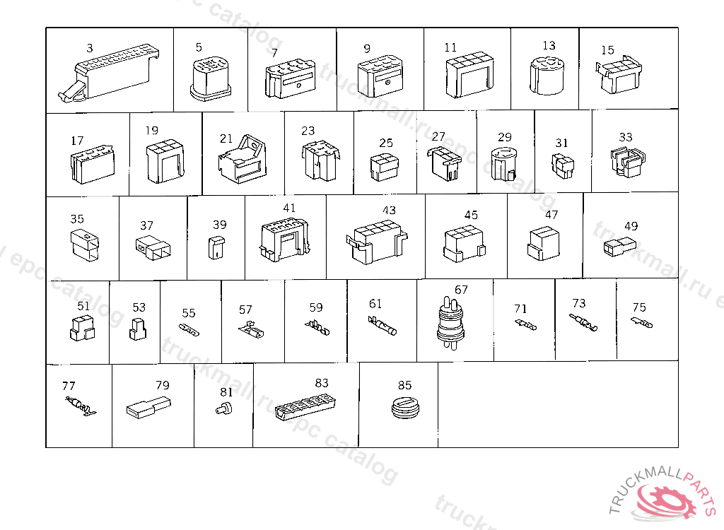 PIN BUSHING HOUSING. PLUG HOUSING FROM CHASSIS/CAB CONNECTION POINT TO TACHOGRAPH