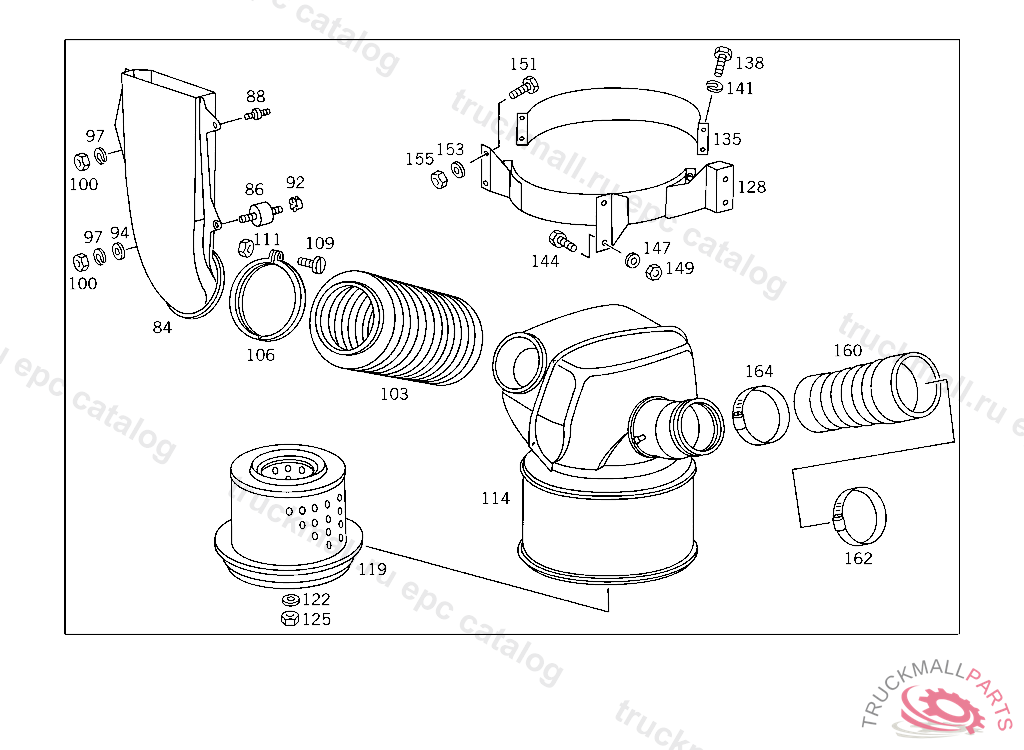 HOSE CLAMP FROM AIR CLEANER TO TRANSVERSE INTAKE PIPE, Replaced By: A0019951910