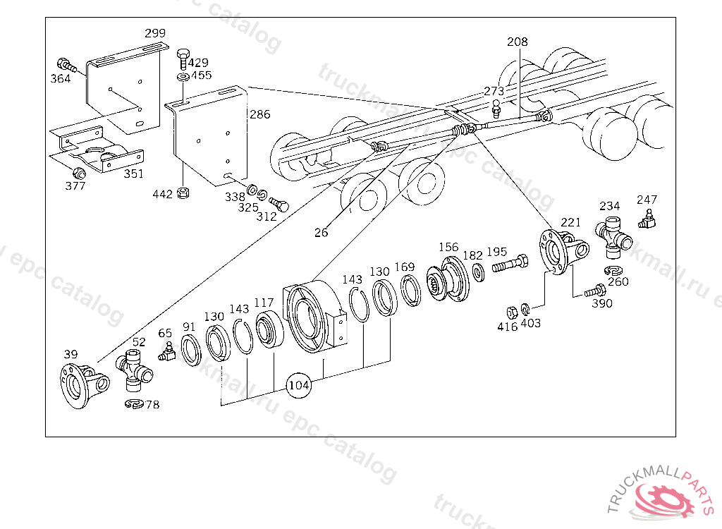 PROPELLER SHAFT FROM PROPELLER SHAFT BEARING TO REAR AXLE I 2087MM, PART IS ONLY OR ALSO SUPPLIED AS RECONDITIONED PART