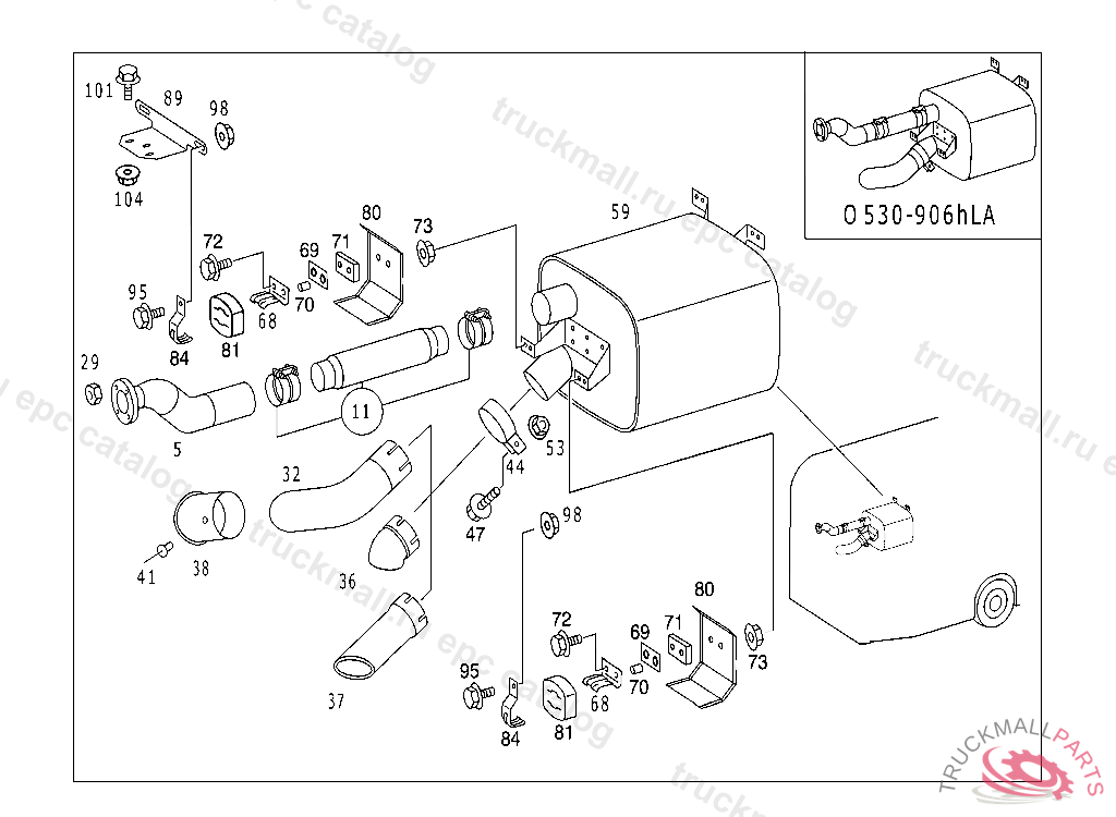 END PIECE AT MUFFLER TO A 628 490 23 14 / A 628 490 12 01