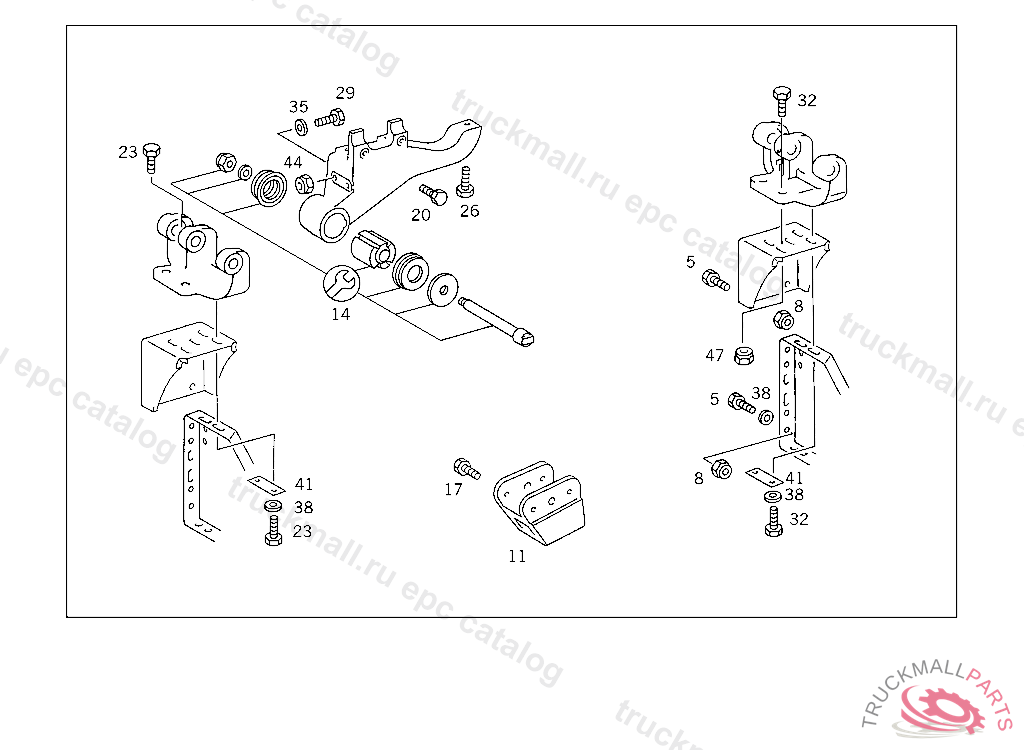 SCREW LEFT AND RIGHT BEARING BRACKETS TO CAB