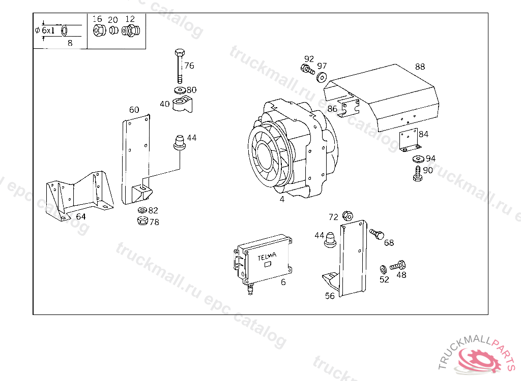 RUBBER MOUNTING TELMA BRAKE TO SUPPORT ON SIDE MEMBER
