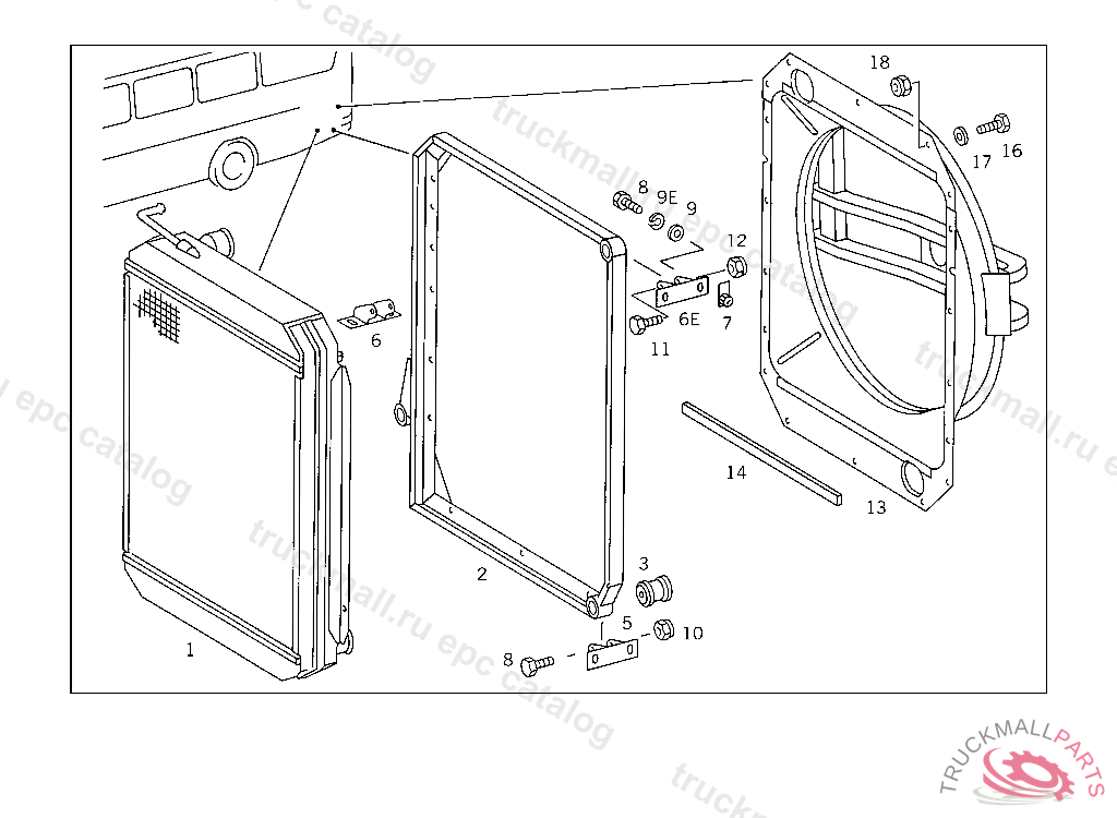 WASHER RADIATOR AND FAN SUPPORT TO BASE FRAME