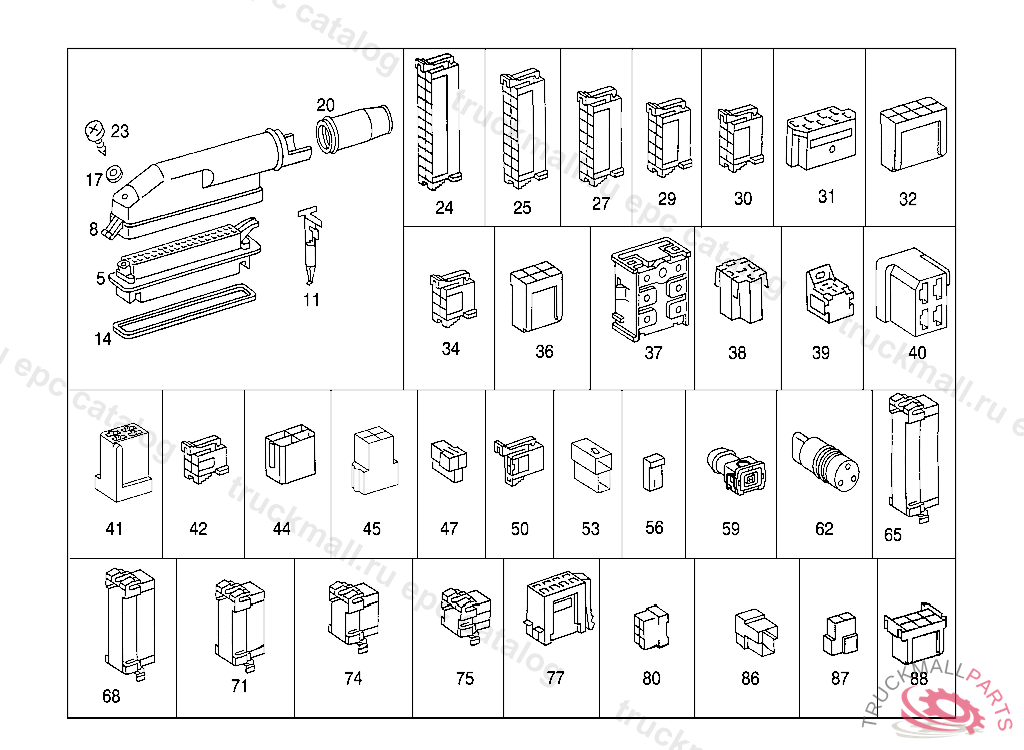 PIN BUSHING HOUSING. PLUG HOUSING FROM CHASSIS/CAB CONNECTION POINT TO TACHOGRAPH