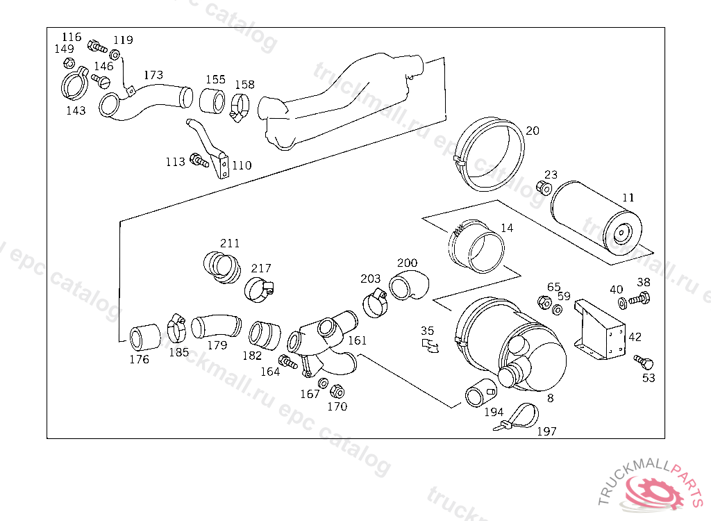HOSE CLAMP FROM AIR CLEANER TO TRANSVERSE INTAKE PIPE, Replaced By: A0019951910