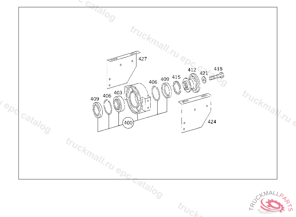 PROTECTIVE CAP FOLLOWER FLANGE, INTERMEDIATE BEARING, BALL BEARING IN RUBBER SEAT