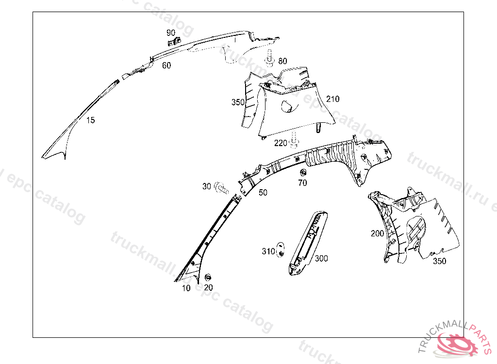 B-PILLAR TRIM B-PILLAR ON THE LEFT, K 44796720100406800 FIRST EXHAUST STOCK OF OLD PARTS UP TO IDENT NO. K 52716920110922 C24AQFT451A0003 GREY, Replaced By: A4516902325
