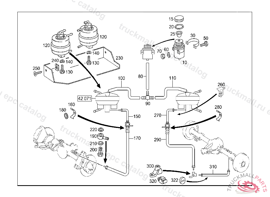 HYDRAULIC LINE BETWEEN DISTRIBUTOR AND SLVE CYLINDER FOR REAR AXLE 310 MM
