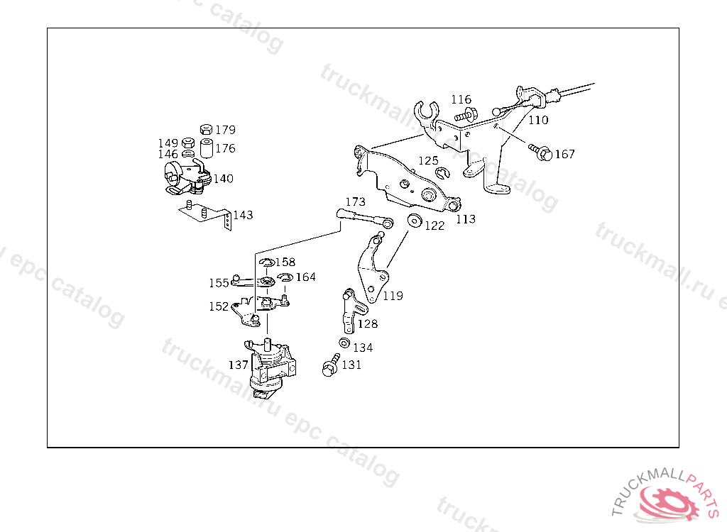 SCREW INTERMEDIATE AND CONTROL LEVERS ON BRACKET