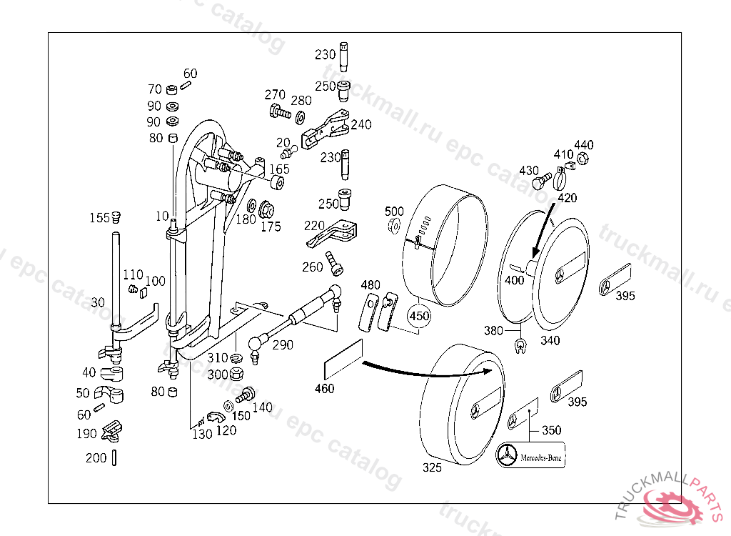 BEARING SPARE WHEEL CARRIER AT REAR END DOOR, TOP