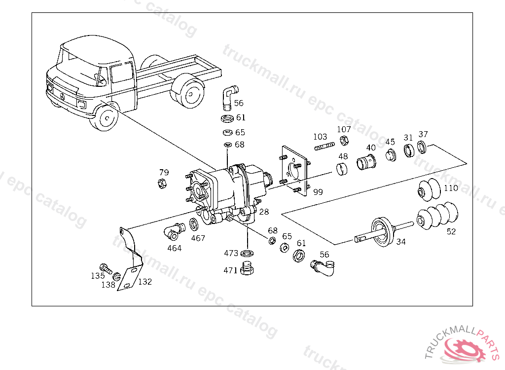BRAKE MASTER CYLINDER CAB, WITH TRUCKS FROM CHASSIS 145737,ALSO INSTALLED ON,SEE FOOTNOTE 5,EXCEPT FOR,SEE FOOTNOTE 4,WITH BUSES FROM CHASSIS 018154 ALSOINSTALLED ON 017661,017829,EXCEPTO FOR SEE FOOTNOTE 7