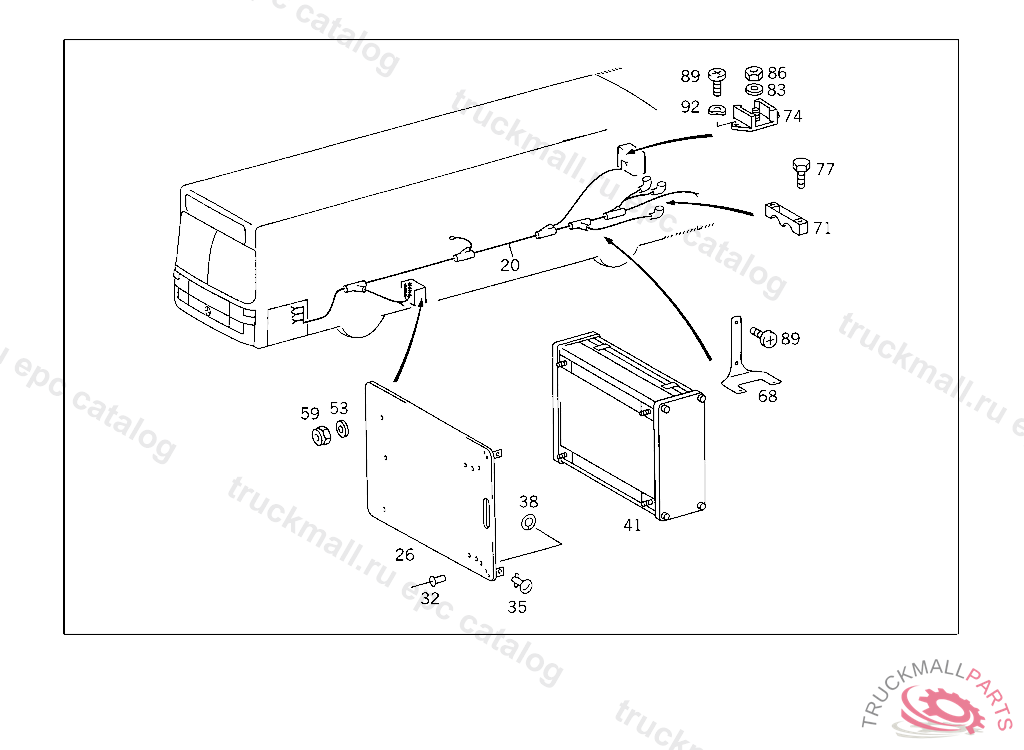 BRACKET CABLE HARNESS TO BELLOWS BRACKET, ON VEHICLES HAVING NO MERCEDES BENZ BODY FROM IDENT NO. 057464 FOR USE WITH MERCEDES-BENZ BODY FROM IDENT NO.: 057603082747
