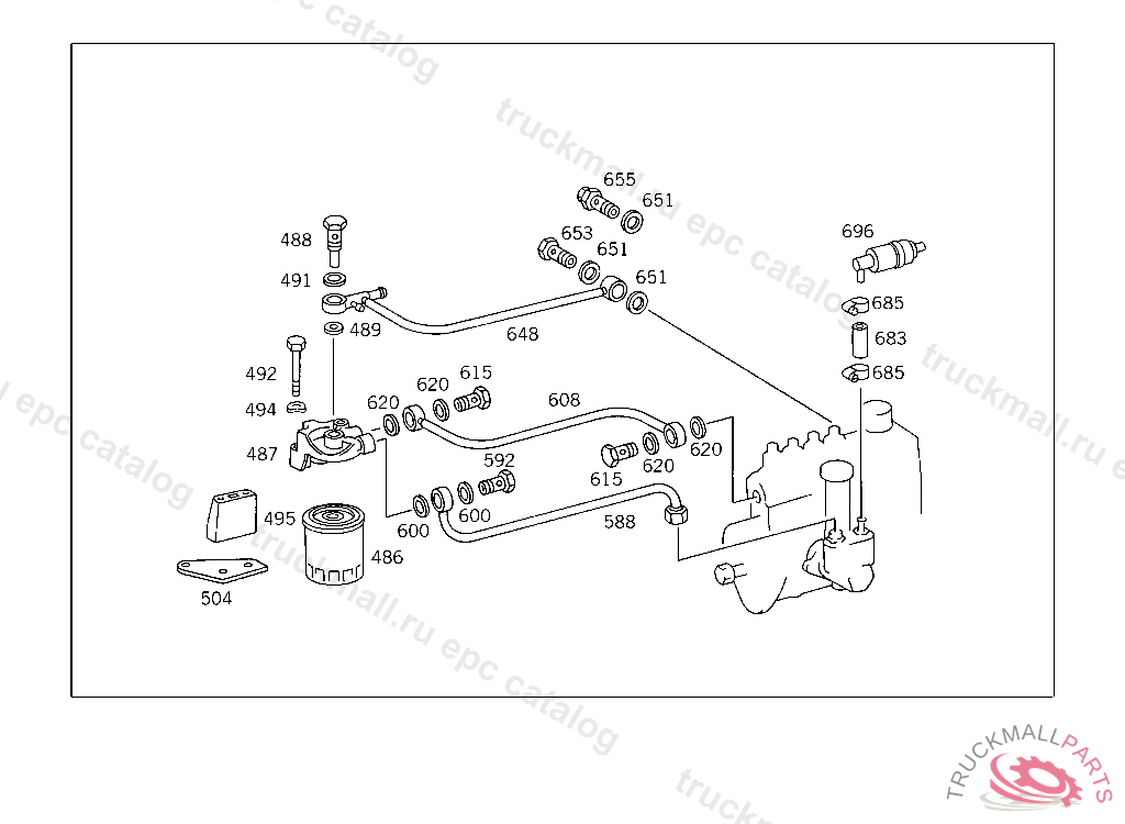 LINE FROM FEED PUMP TO FILTER, 616.912 10/50,20/60 063574 ALSO INSTALLED ON 060283-060289,061120,061121,062724-062742,063163-063167,063273-063275,063425-063431,063561-063569. 616.912 12/52,22/62 021690 ALSO INSTALLED ON 020732-020734,020893-020900,021578,021579,021583,021618,021619.