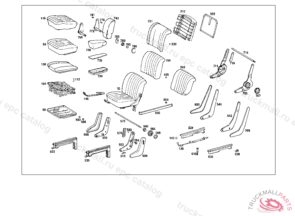 FRONT SEAT RIGHT, STATE COLOR NUMBER WHEN ORDERING UP TO CHASSIS: 110.000,001,004,010 130557 110.100,101,104,110 225647 111.010 069692
