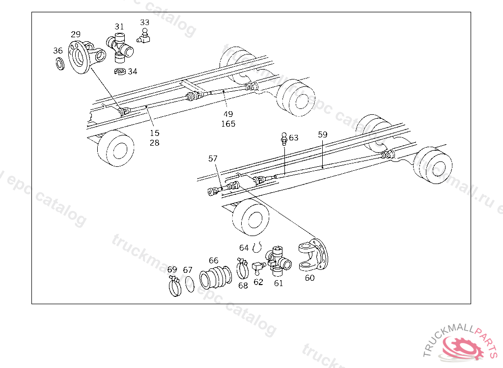 PROPELLER SHAFT , BEARING BUSHING O.D.,38 MM, Replaced By: A6744101702