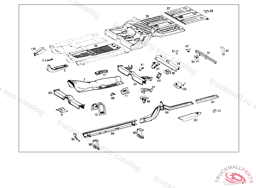 FLOOR , 000,001,004,010 UP TO CHASSIS 130557,100,101,104,110 UP TO CHASSIS 225647, Replaced By: A1106100861, +001A1106830224