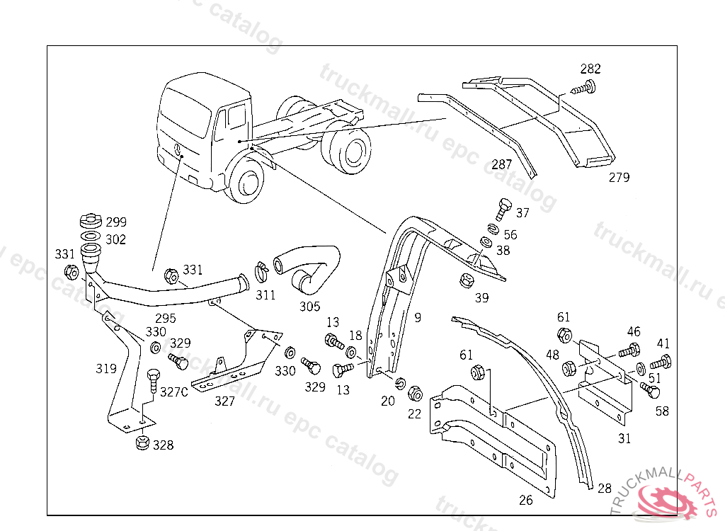 SUPPORT LEFT FENDER, WITH 385.068,069 ON VEHICLES WITH DB-CAB,ONLY ON 385.019 ONLY FOR VEHICLES HAVING NO MERCEDES-BENZ PLATFORM