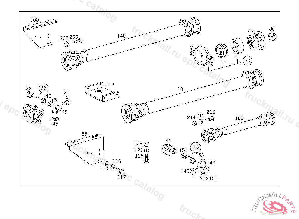PROPELLER SHAFT , THIS NOTE OF REPLACEMENT APPLIES ONLY TO THE ITEM LISTED OPPOSITE BEARING BUSHING O..D.,57 MM, Replaced By: A3874108904