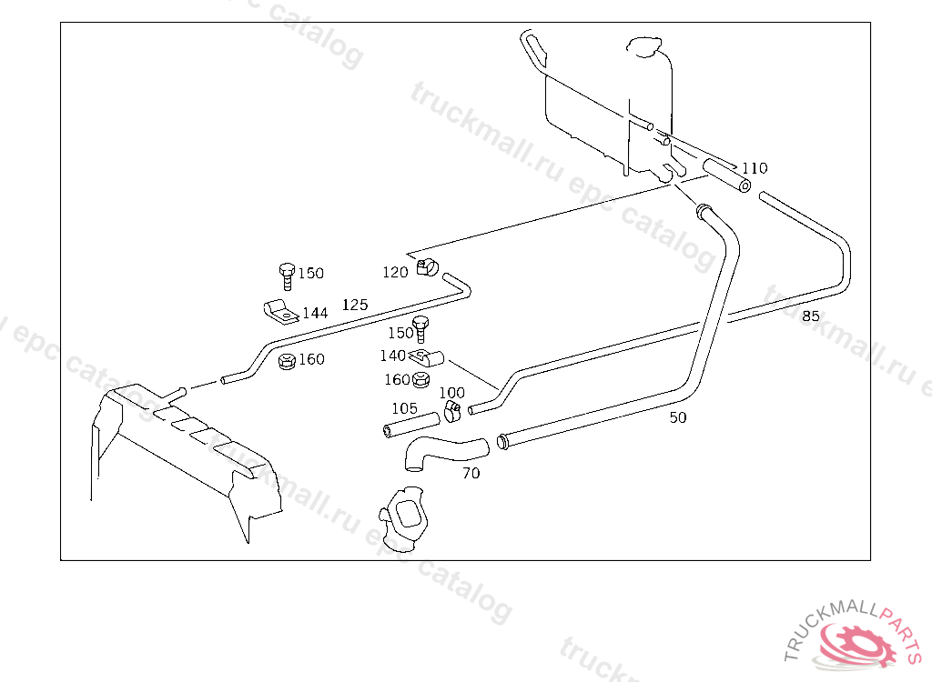 BREATHER PIPE VENTILATION, FROM RADIATOR TO EXPANSION TANK, 415 5 014668 416 5 000515 417 4 972023 FOR USE WITH SHORT MERCEDES-BENZ CAB