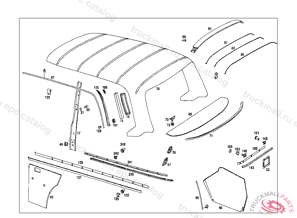 DRIP MOULDING RIGHT, FROM CHASSIS: 010 046180 EXCEPT FOR 048604-049498 015 047270 EXCEPT FOR 050446-051563 FROM CHASSIS: 110,112 110848 EXCEPT FOR 117451-120076 115 051166 EXCEPT FOR 054537-055883 UP TO CHASSIS: 015 200000 100,102,103,110,112 400000 115 200000