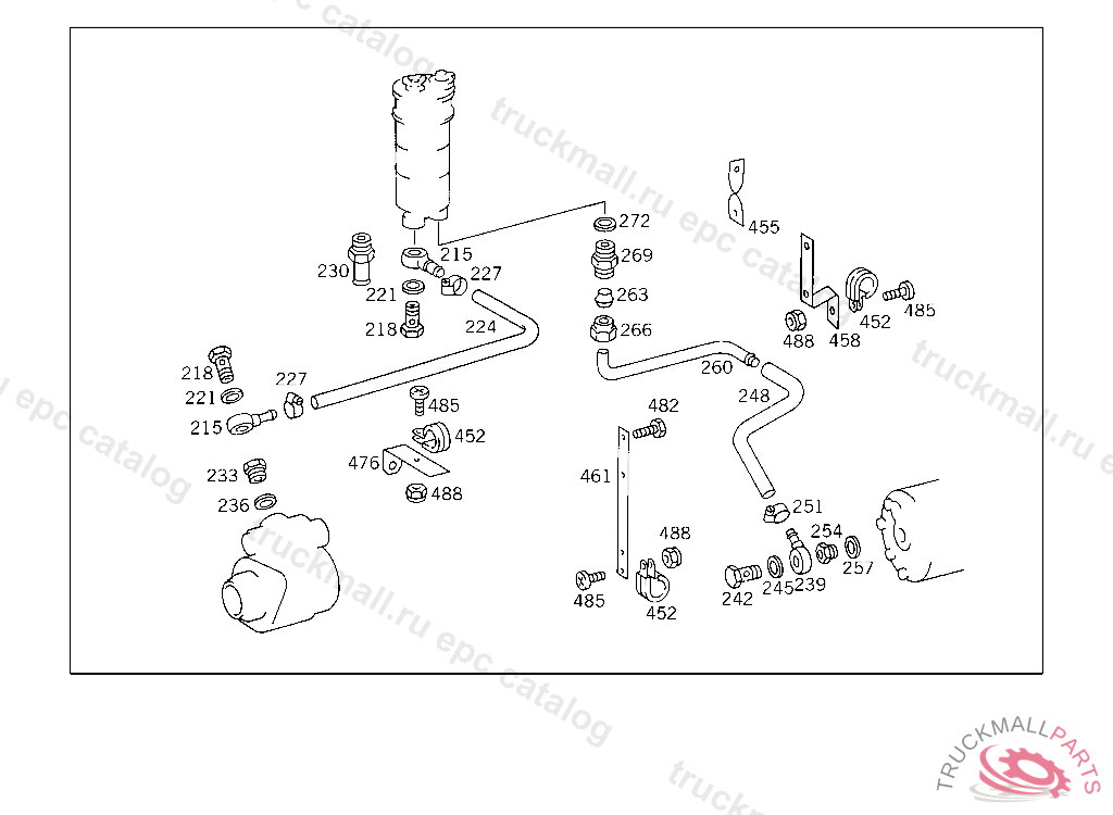 LINE FROM OIL TANK TO POWER STEERING PUMP AT TRANSMISSION