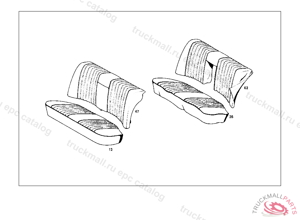 REAR SEAT CUSHION , STATE COLOR NUMBER WHEN ORDERING FROM CHASSIS: 023 010419 072 007129 073 004092