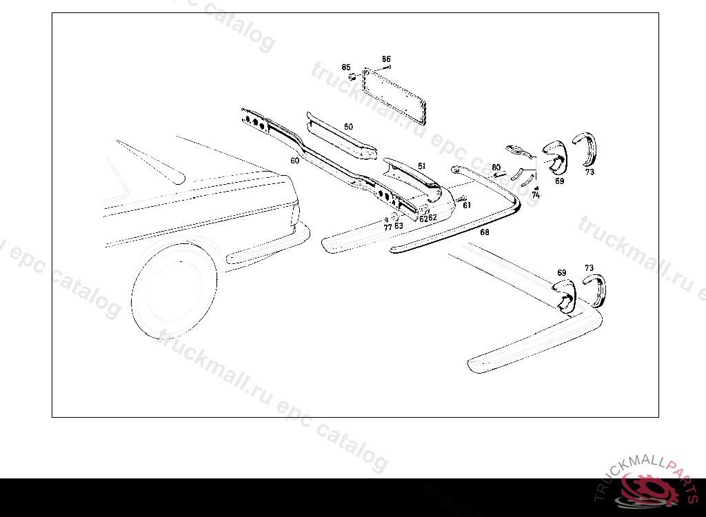 REAR BUMPER FACE BAR REAR RIGHT, UP TO CHASSIS: 110.010 130557 110.110 225647 111.010 069692