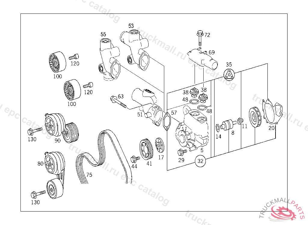 WATER PUMP LESS GASKETS, REMAN PART - WHEN YOU ORDER THIS PART PLEASE ADD THE PREFIX"R" IN FRONT OF THE PART NO., Replaced By: A4602001301