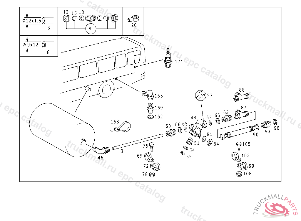 LINE FROM FOUR-CIRCUIT PROTECTIVE VALVE TO AIR RESERVOIR 9X12 MM, LENGTH AVAILABLE 3000 MM