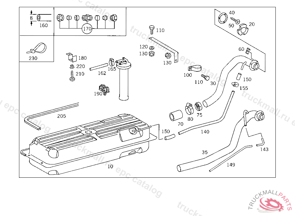 FILLER NECK , UP TO IDENT NO. 826383 WHEELBASE: 3350 MM UP TO IDENT NO. 831841 WHEELBASE: 3050 MM, Replaced By: A6014700726, +001A6014700028, +001A6014760126