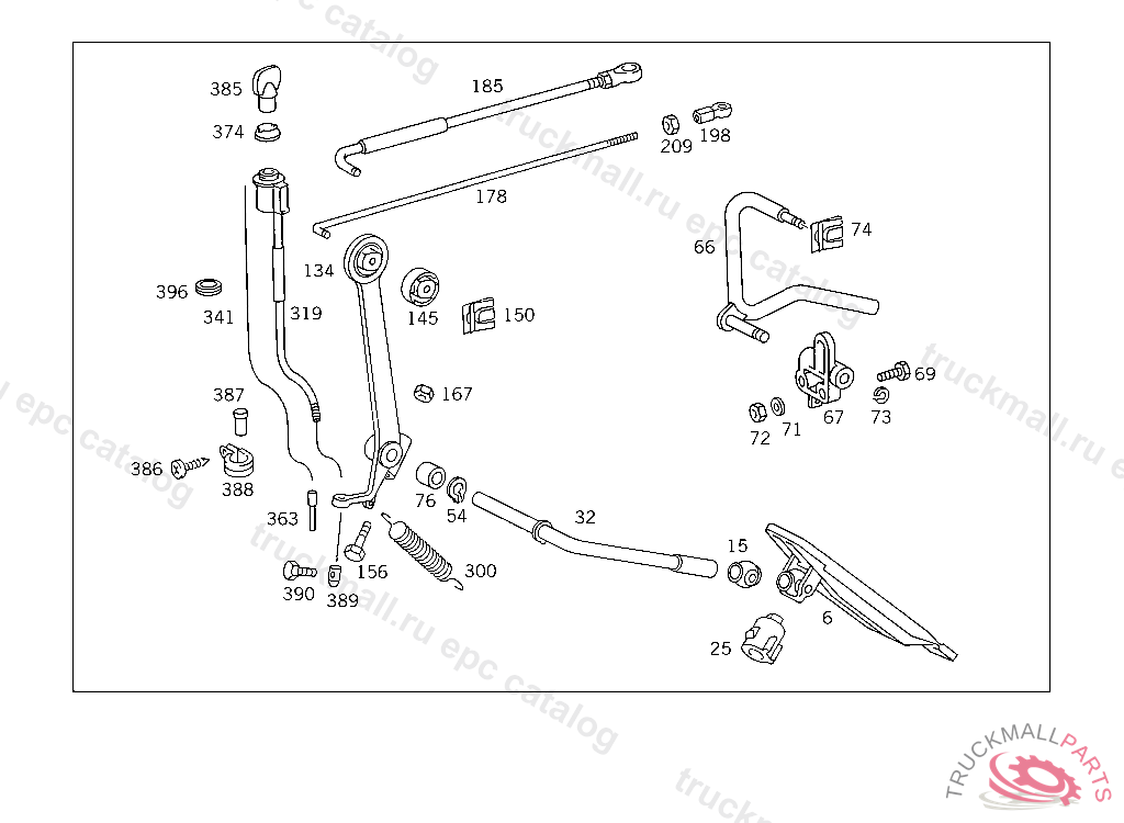 ROD FROM CONTROL LEVER TO INTERMEDIATE SHAFT AT ENGINE, UP TO IDENT NO. 941505 EXCEPT FOR 899081-941503 ONLY WITH OM601/OM602 ENGINE