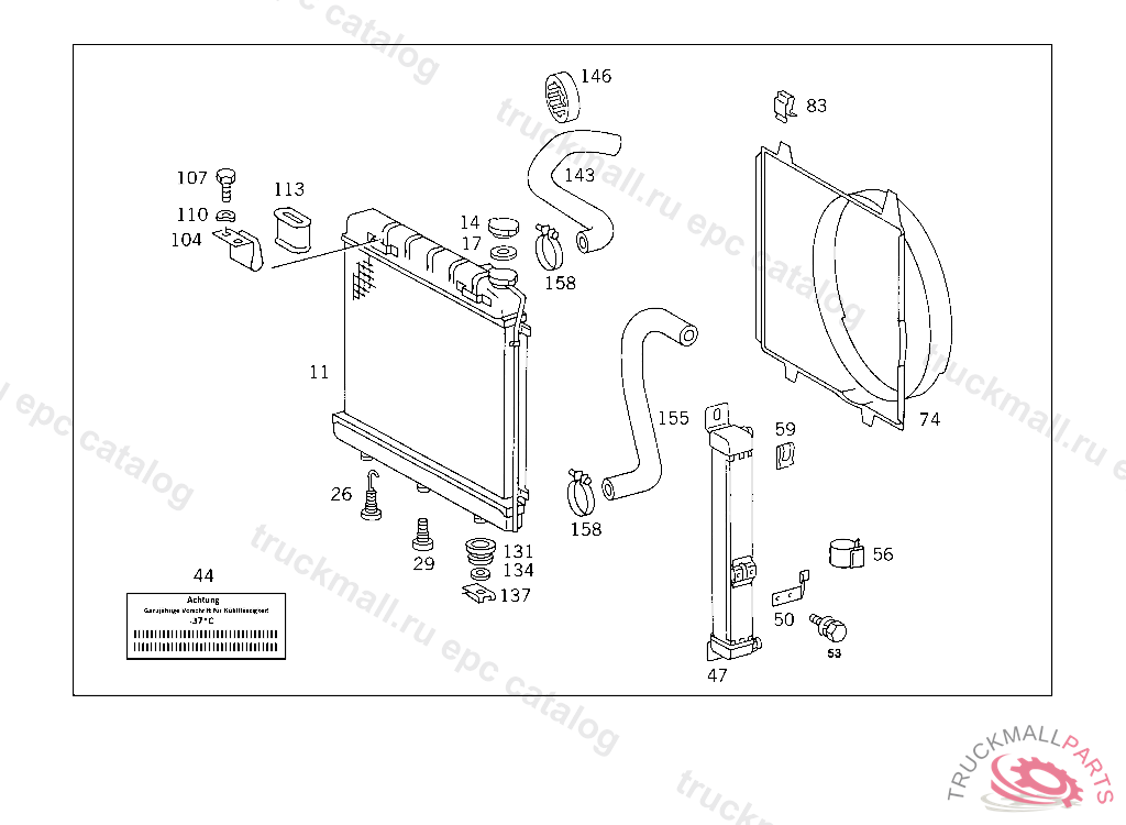 RADIATOR , ONLY USED WITH BUMPERS HAVING ADDITIONAL LOUVERS 974184 P 000001 EXHAUST STOCK OF OLD PART NUMBERS FIRST UP TO IDENT NO. P 251776 ONLY USED OM601 P 251434 ONLY USED OM602 P 251573 ONLY USED WITH AUTOMATIC TRANSMISSION, Replaced By: A6015008103