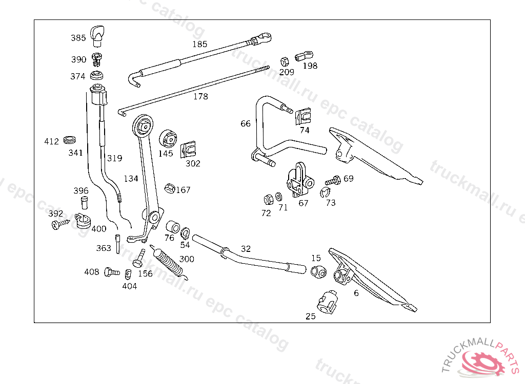 ROD FROM CONTROL LEVER TO INTERMEDIATE SHAFT AT ENGINE, UP TO IDENT NO. 941505 EXCEPT FOR 899081-941503 ONLY WITH OM601/OM602 ENGINE
