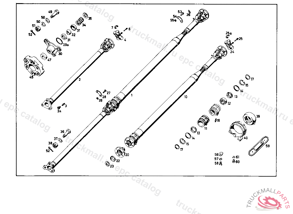 PROPELLER SHAFT,. SPLIT PROPELLER SHAFT, WITH INTERMEDIATE BEARING, WITHOUT BEARING BRACKET, RUBBER MOUNTING AND CENTERING CROSS PROPELLER SHAFT CONNECTIO, Replaced By: A1214101903