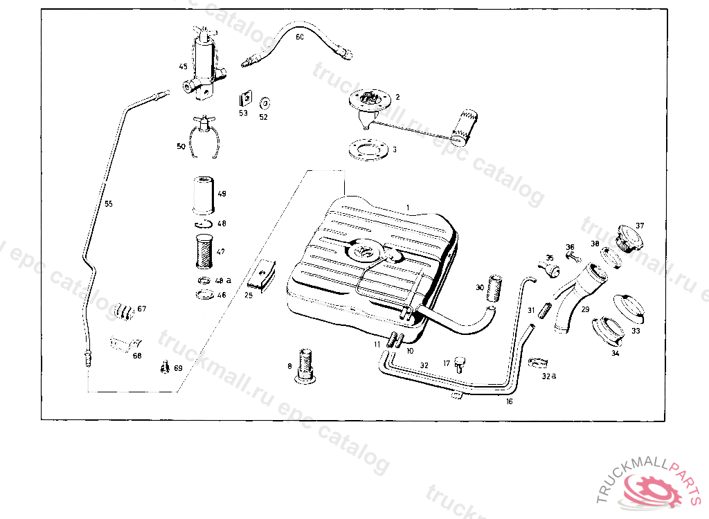 FUEL TANK WITH SCREW PLUG. FUEL TANK CAPACITY 56 LITERS