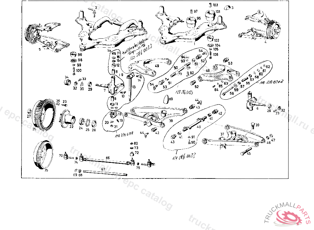 FRONT AXLE SUPPORT. SUBFRAME WITH REAR ENGINE MOUNTING