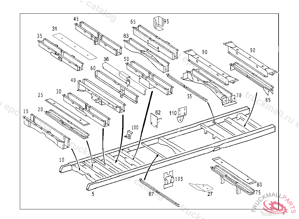 31 FRAME/TRAILER COUPLING - 380 SIDE AND CROSS MEMBERS,AT REAR