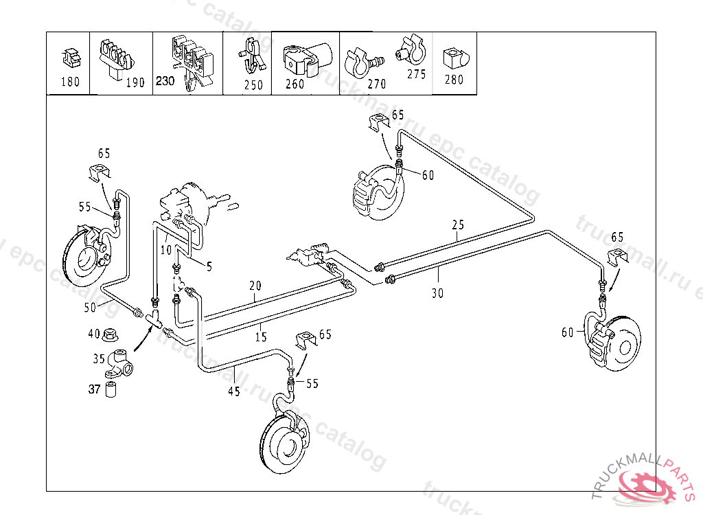 LINE FROM MASTER CYLINDER TO FRONT LEFT BRAKE HOSE, 000 193701 003 097469 086 006508 093 007717 102,103 209243 183 013349 190 020074 193 000014 200 006559 283 001514 INAPPLICABLE TO ANTI-LOCK BRAKING SYSTEM (ABS)