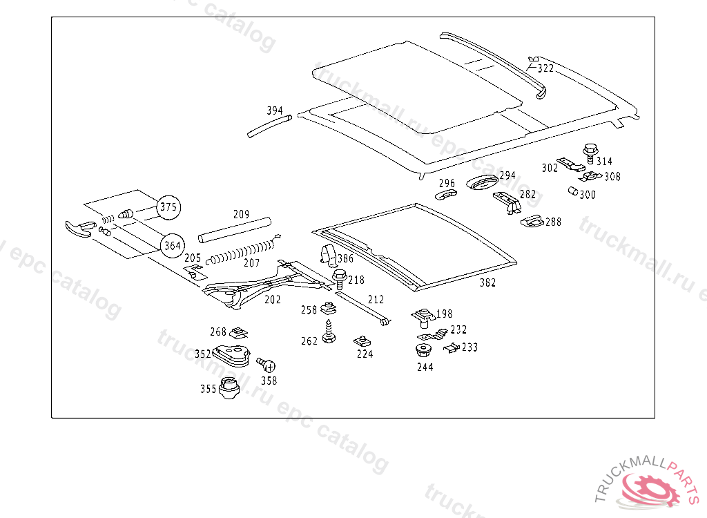 REPAIR KIT SLIDING ROOF HANDLE MOUNTING PARTS WITH LOCKING HANDLE, 033 109427 123 378902 130 279420 133 022590 223 143269 023/UNTIL PRODUCTION STOP