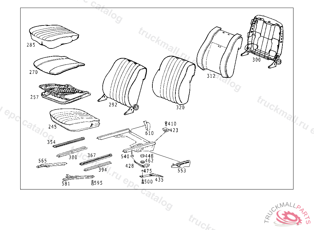 CUSHION FRAME , FROM CHASSIS 116.020 112847 116.024,025 132678 116.028,029 050610 116.032,033 088837 116.036 005559