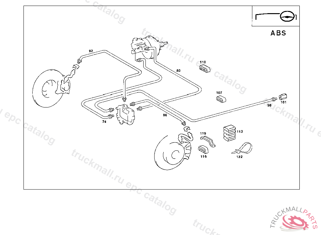 LINE FROM MASTER CYLINDER TO FRONT LEFT BRAKE HOSE, 000 193701 003 097469 086 006508 093 007717 102,103 209243 183 013349 190 020074 193 000014 200 006559 283 001514 INAPPLICABLE TO ANTI-LOCK BRAKING SYSTEM (ABS)